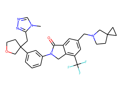 SMILES C[N]1C=NN=C1CC2(CCOC2)C3=CC=CC(=C3)N4CC5=C(C=C(CN6CCC7(CC7)C6)C=C5C4=O)C(F)(F)F