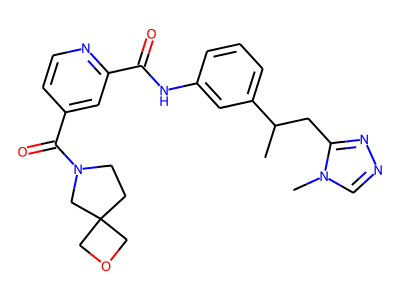 CC(CC1=NN=C[N]1C)C2=CC=CC(=C2)NC(=O)C3=NC=CC(=C3)C(=O)N4CCC5(COC5)C4