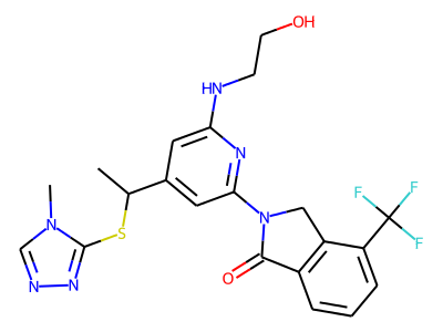 CC(SC1=NN=C[N]1C)C2=CC(=NC(=C2)NCCO)N3CC4=C(C=CC=C4C(F)(F)F)C3=O