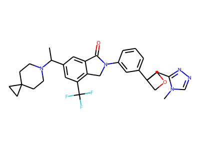 CC(N1CCC2(CC1)CC2)C3=CC(=C4CN(C(=O)C4=C3)C5=CC(=CC=C5)C6(COC6)CC7=NN=C[N]7C)C(F)(F)F