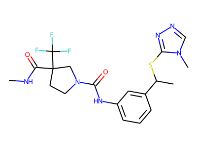 CNC(=O)C1(CCN(C1)C(=O)NC2=CC=CC(=C2)C(C)SC3=NN=C[N]3C)C(F)(F)F