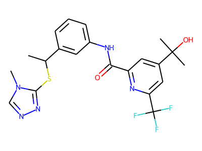 CC(SC1=NN=C[N]1C)C2=CC(=CC=C2)NC(=O)C3=NC(=CC(=C3)C(C)(C)O)C(F)(F)F