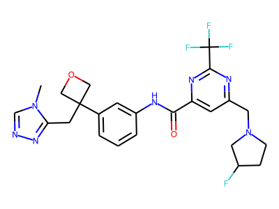 C[N]1C=NN=C1CC2(COC2)C3=CC=CC(=C3)NC(=O)C4=CC(=NC(=N4)C(F)(F)F)CN5CCC(F)C5