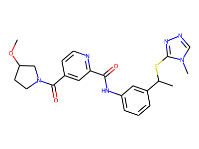 COC1CCN(C1)C(=O)C2=CC(=NC=C2)C(=O)NC3=CC=CC(=C3)C(C)SC4=NN=C[N]4C