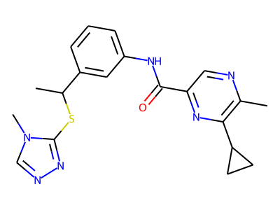 CC(SC1=NN=C[N]1C)C2=CC(=CC=C2)NC(=O)C3=NC(=C(C)N=C3)C4CC4