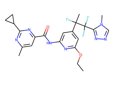 CCOC1=NC(=CC(=C1)C(C)(F)C(F)(F)C2=NN=C[N]2C)NC(=O)C3=NC(=NC(=C3)C)C4CC4