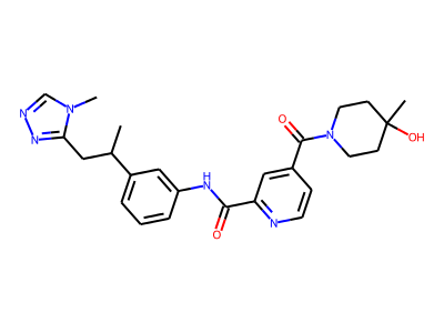 CC(CC1=NN=C[N]1C)C2=CC=CC(=C2)NC(=O)C3=NC=CC(=C3)C(=O)N4CCC(C)(O)CC4