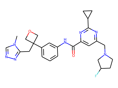 C[N]1C=NN=C1CC2(COC2)C3=CC=CC(=C3)NC(=O)C4=CC(=NC(=N4)C5CC5)CN6CCC(F)C6