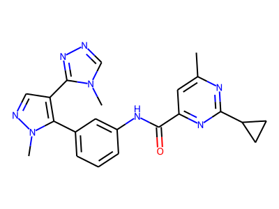 C[N]1C=NN=C1C2=C([N](C)N=C2)C3=CC=CC(=C3)NC(=O)C4=NC(=NC(=C4)C)C5CC5
