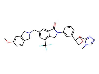 COC1=CC2=C(CN(CC3=CC(=C4CN(C(=O)C4=C3)C5=CC(=CC=C5)C6(COC6)CC7=NN=C[N]7C)C(F)(F)F)C2)C=C1